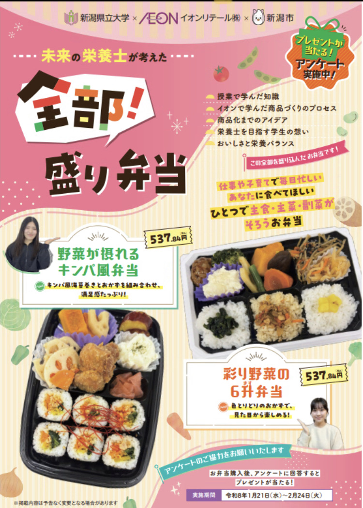 全部盛り弁当 店舗名 : イオンリテールチラシ期限 : 2026/2/24 仕事や子育てで毎日忙しいあなたに食べて欲しい。 ひとつで主食、主菜、副菜が揃うお弁当。 投稿ナビゲーション 前の記事親子で楽しもう お待ちつき体験会次の記事毎週金・土・日大売り出し! 2026年1月22日 zucky スーパー, 新潟県 コメントを残す